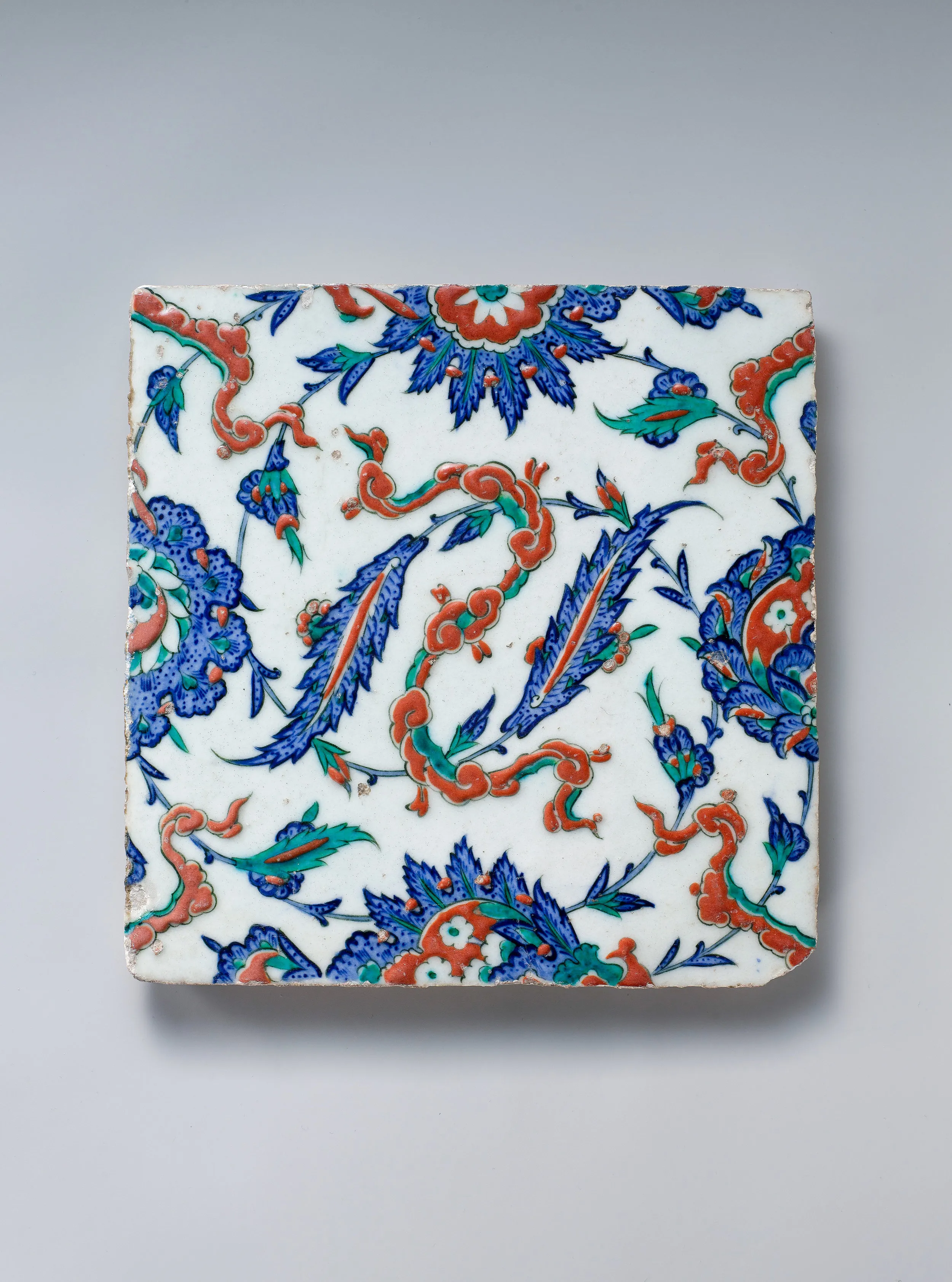 Pot roast originates from the french meal Boeuf à la Mode; the traditional, simpler American method served with potatoes and carrots is an adaptation provided by German immigrants. The pot roast above is served on a colorful dish decorated in a pattern called “Iznik,” named for the place in Turkey where the pattern originated. These were the first dishes (and only ones so far) that I ever purchased for myself as my “special” dishes that were a variance from my usual preference for white and minimal everyday wares. They were from Williams Sonoma, which still sells variations of the pattern, but the true Iznik patterned ceramics date from the 15th and 16th century. Iznik—also known as Nicanae, or the meeting place which led to the establishment of the Nicene Creed in Christianity—was the center of the production of these tiles, called “chini” when referring to the methods used in that historical period. They are ornate, vivid, often floral, and colorful. The above example from the Met’s collection is an especially well-preserved tile from circa 1578.