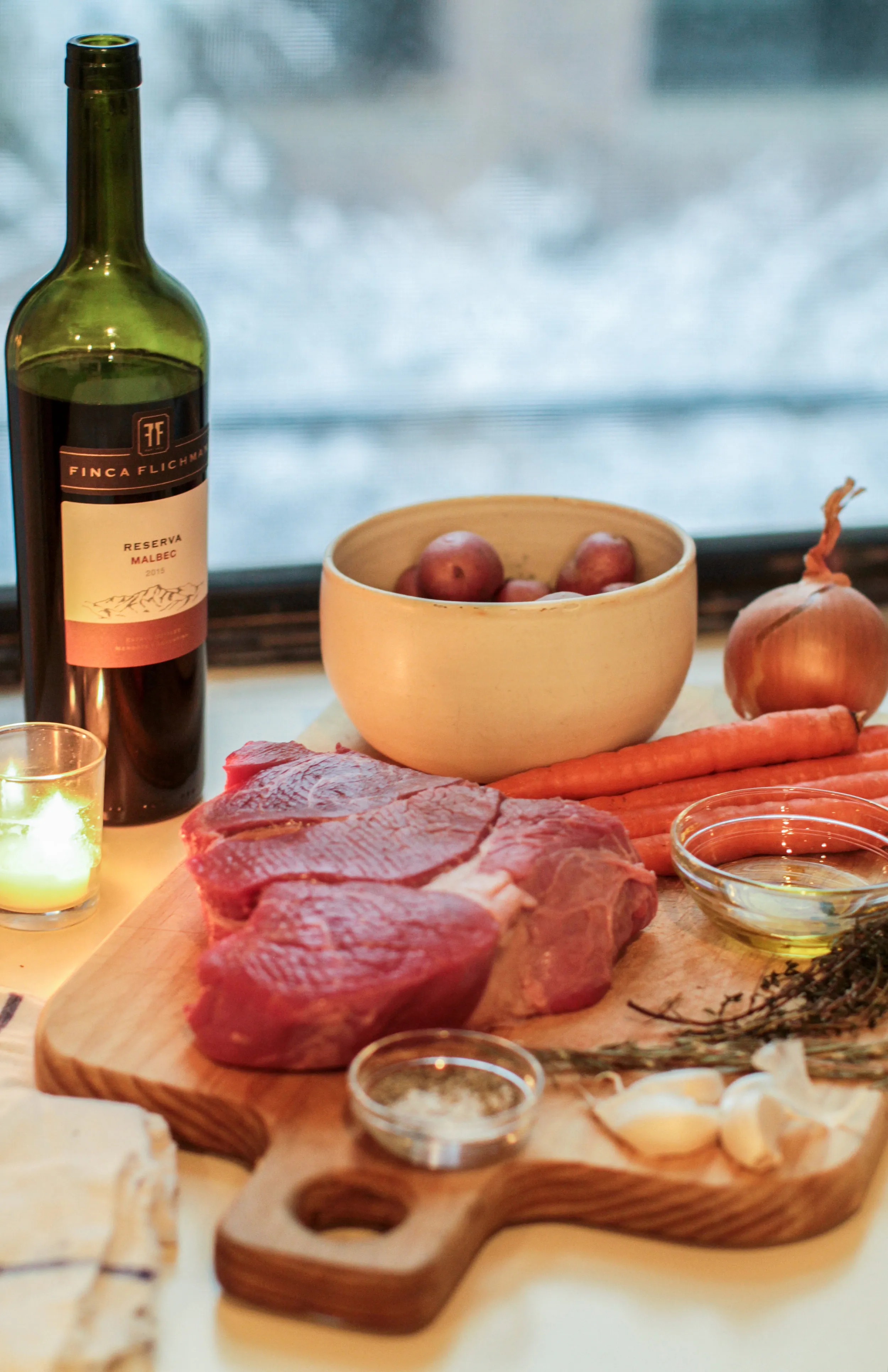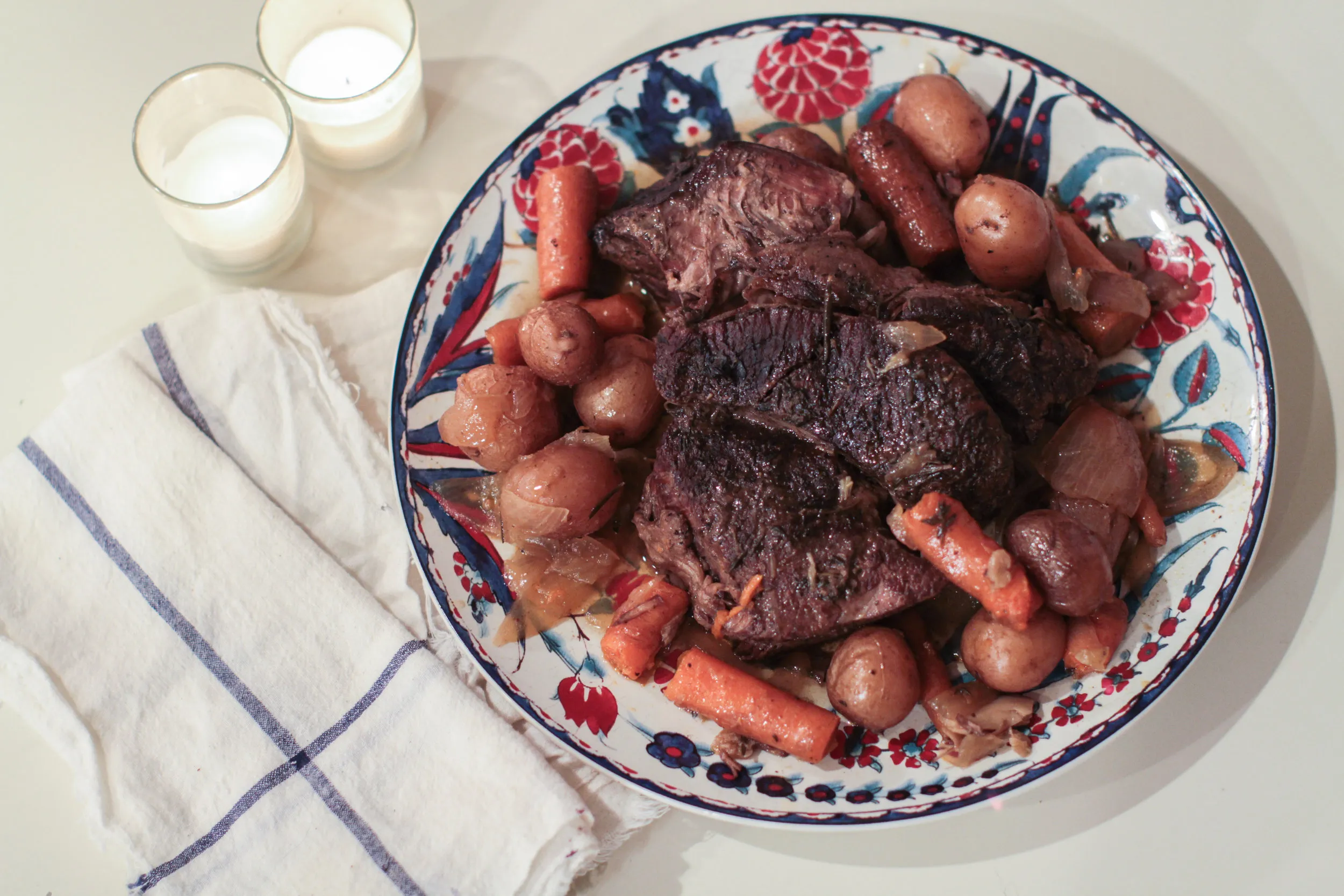 In my own childhood pot roast was a dish my father took great pride in making and the rest of us took great relish in eating. When I would return home from college or living abroad, there were two things I’d always want to eat in order to recreate the idea of home: my favorite Greek dish pastitsio, and my father’s pot roast. While I don’t include many red meat dishes on Faye Makes Food for reasons both personal and environmental, I chose to honor this one for all the beautiful connotations it carries. While I try to do so sparingly, when I eat meat I believe it should be done with a sense of honor toward the animal providing it. It should be prepared well, shared with loved ones, and treated as an event rather than a common every-day occurrence. A lovely wine-soaked pot roast meets all of these criteria. So long as you get a good, non-lean piece of meat, brown it, add wine, and give it time, you really can’t mess this up.